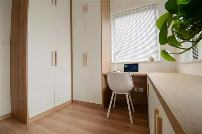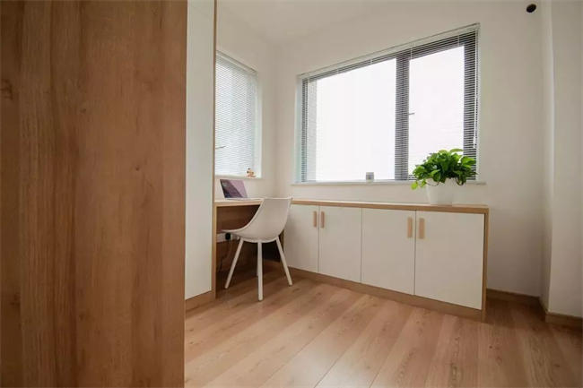 ▲ 書房書桌的設(shè)計在窗戶邊,保證了采光的充足,百葉簾設(shè)計超級好看。