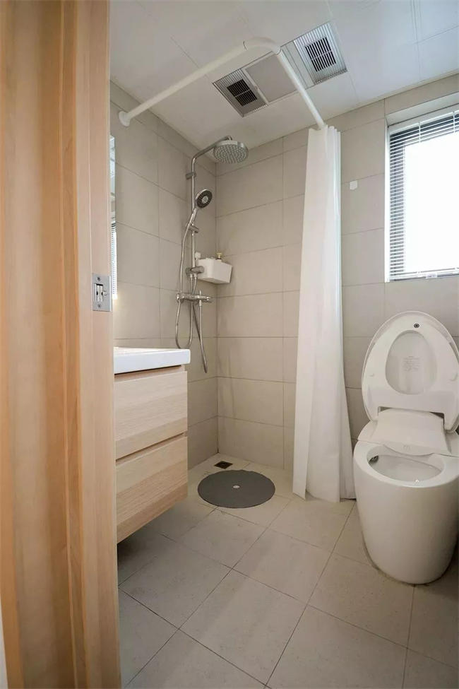 ▲ 浴簾是最簡單的干濕分離設(shè)計,最經(jīng)濟實惠,但是要注意下水坡度的設(shè)計。