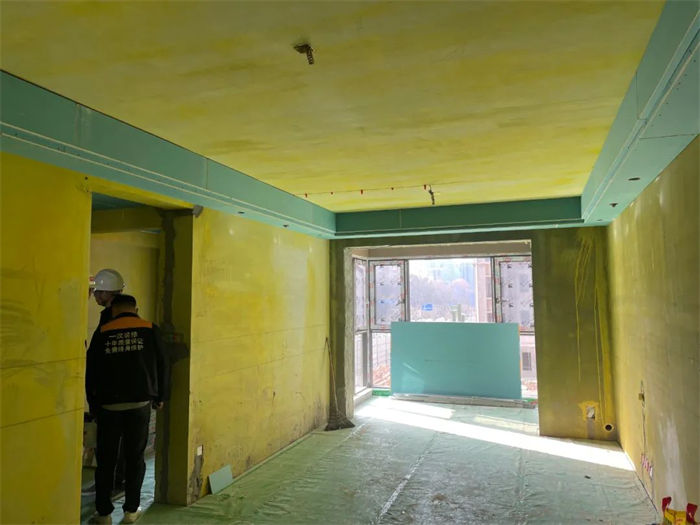 “黃墻綠地”中,黃墻指的是黃色的墻固,是一種綠色環(huán)保、無毒無味、高性能的界面處理材料。墻固具有優(yōu)異的滲透性,能充分浸潤基材表面,使基層密實,提高光滑界面的附著力。綠地指的是綠色的地固,主要起到固沙的作用。