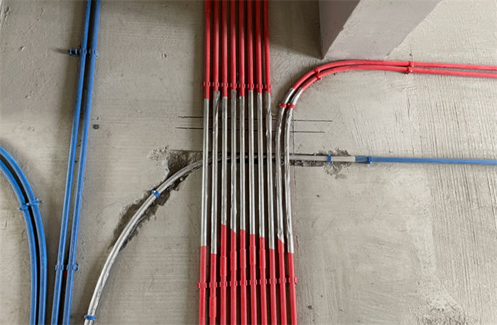 在強電與弱電的交匯管處,我們采用錫箔紙進(jìn)行包裹,杜絕電路隱患。所有電線均在彈線開槽后,先鋪設(shè)線管再進(jìn)行穿線。避免先穿線后鋪設(shè)線管后,無法抽動電線的現(xiàn)象,便于后期發(fā)生問題可以抽動電線維修。在后期封磚環(huán)節(jié),我們也會在墻磚外貼上管道位置示意紙,讓業(yè)主與施工隊明確水電管道位置,保障施工安全。