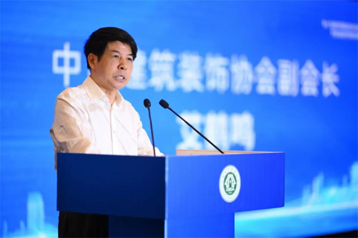 中國(guó)建筑裝飾協(xié)會(huì)副會(huì)長(zhǎng)艾鶴鳴在啟幕儀式上致辭