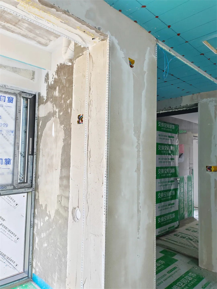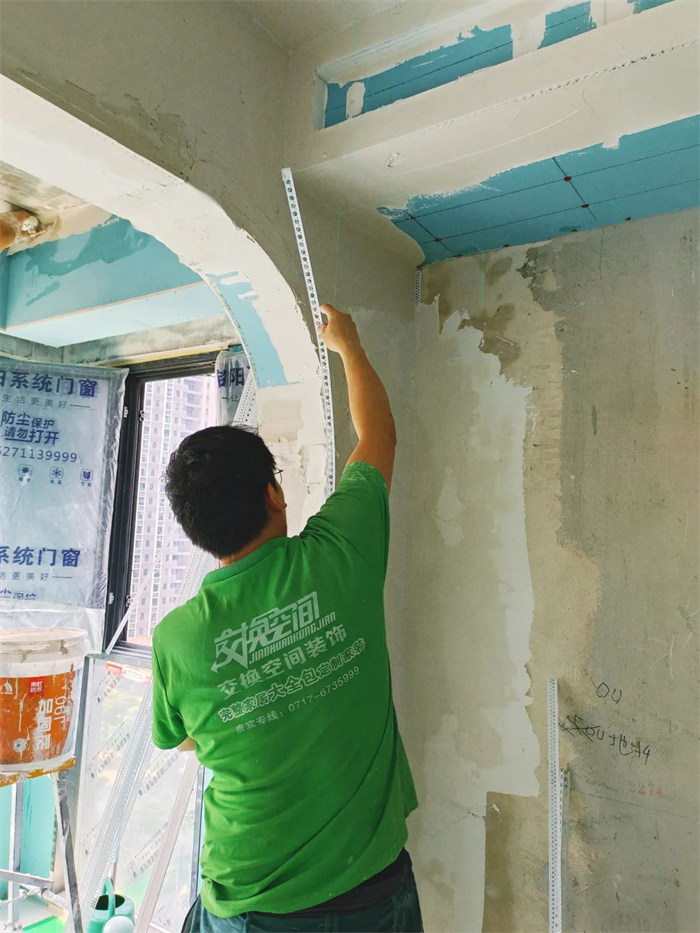 △油工進(jìn)場(chǎng)的第一件事并不是批膩?zhàn)?,而是先貼陰陽(yáng)角條,這是為了后期減少人工水平誤差帶來(lái)的一系列缺陷