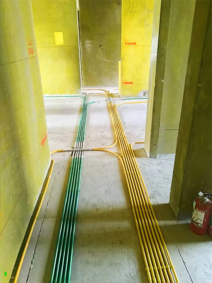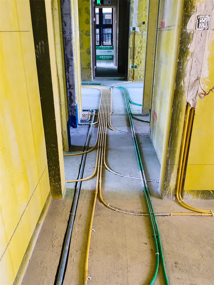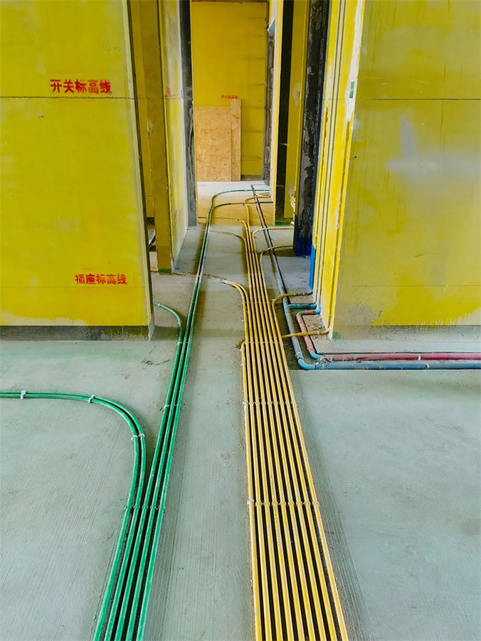 電線管線溝切割深度30mm;電線管線溝寬度:單管25mm,雙管55mm;水管線溝切割深度40mm,寬度45mm;線盒開槽尺寸長寬各超5mm,線管排布感觀橫平豎直,合格。