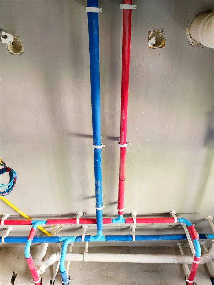 △水管排布感觀橫平豎直,墻體線槽內(nèi)給水管只能用整管,不允許用直接連接,合格。