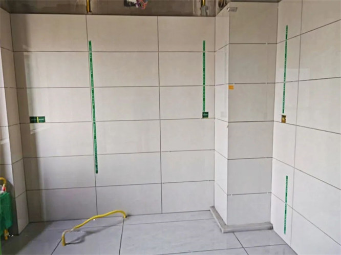 △瓷磚必須橫平豎直,整體空鼓率不能超過(guò)5%,垂平誤差不得超過(guò)3mm,合格。