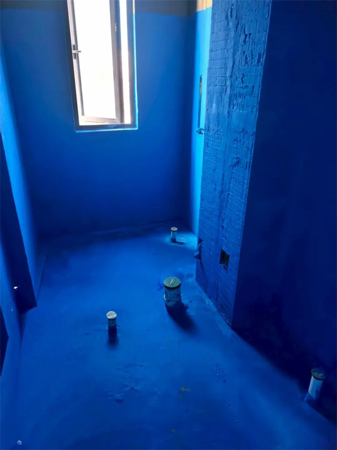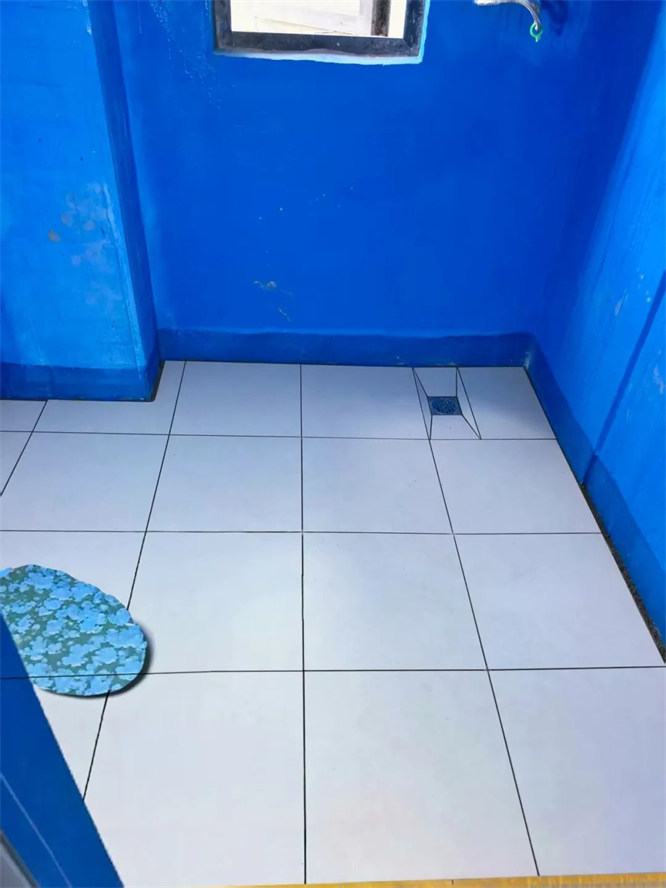 △衛(wèi)生間防水涂層均勻覆蓋在地面,施工無(wú)漏刷破損。