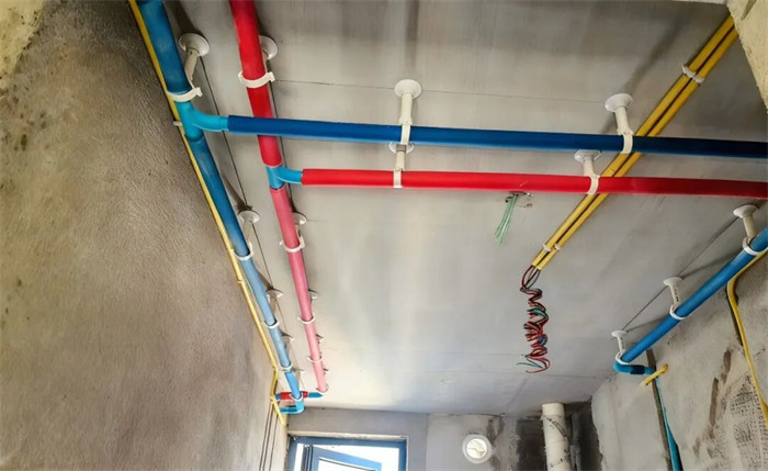 △水管排布感觀橫平豎直,墻體線槽內(nèi)給水管只能用整管,不允許用直接連接,合格。
