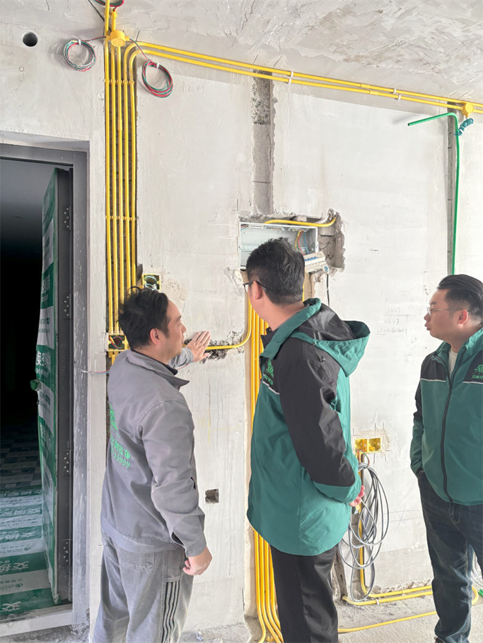 △巡檢不是走過場,需要對水電施工等關鍵節(jié)點進行細致檢查。黃色的線管規(guī)范排布,每一處接線都要嚴格遵循工藝標準,這不僅是對施工規(guī)范的堅守,更是對業(yè)主新家品質(zhì)的承諾。