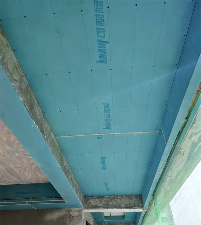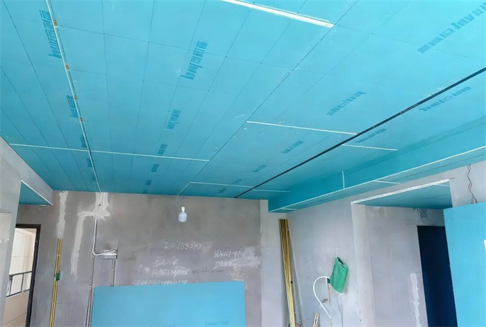 △吊頂平梁,梁下過一層石膏板,厚度10mm,縫隙用發(fā)泡膠軟連接,所有石膏均要求切割平直,陽角不允許用石膏板原邊,合格。