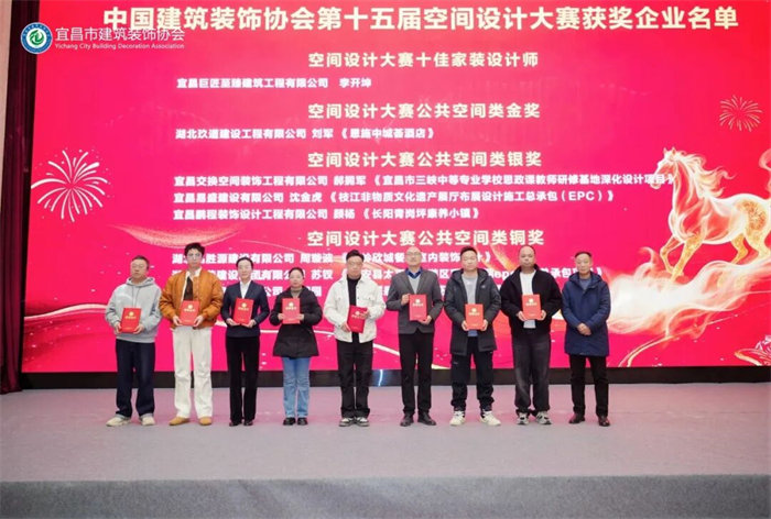 市委社工部部長、市委“兩新”工委書記皮祖武向獲得2025年度中國建筑裝飾協(xié)會第十五屆空間設(shè)計大賽獎項(xiàng)的企業(yè),頒發(fā)獲獎證書,祝賀他們奪得國家級獎項(xiàng),激勵市建筑裝飾協(xié)會持續(xù)加強(qiáng)產(chǎn)業(yè)鏈黨建工作,培育更多專業(yè)人才、行業(yè)精英、領(lǐng)軍人物和精品工程、品牌服務(wù),為持續(xù)推動宜昌市建筑裝飾產(chǎn)業(yè)發(fā)展,提供政治保證和組織保障。