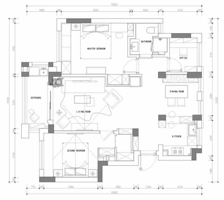 次臥延續(xù)了主臥的設(shè)計,只是床選擇黑色系的,似乎這樣的搭配也別有一番風(fēng)味。