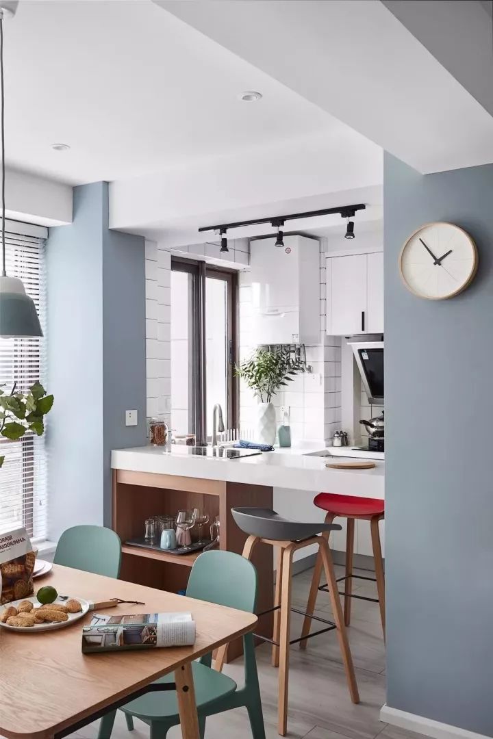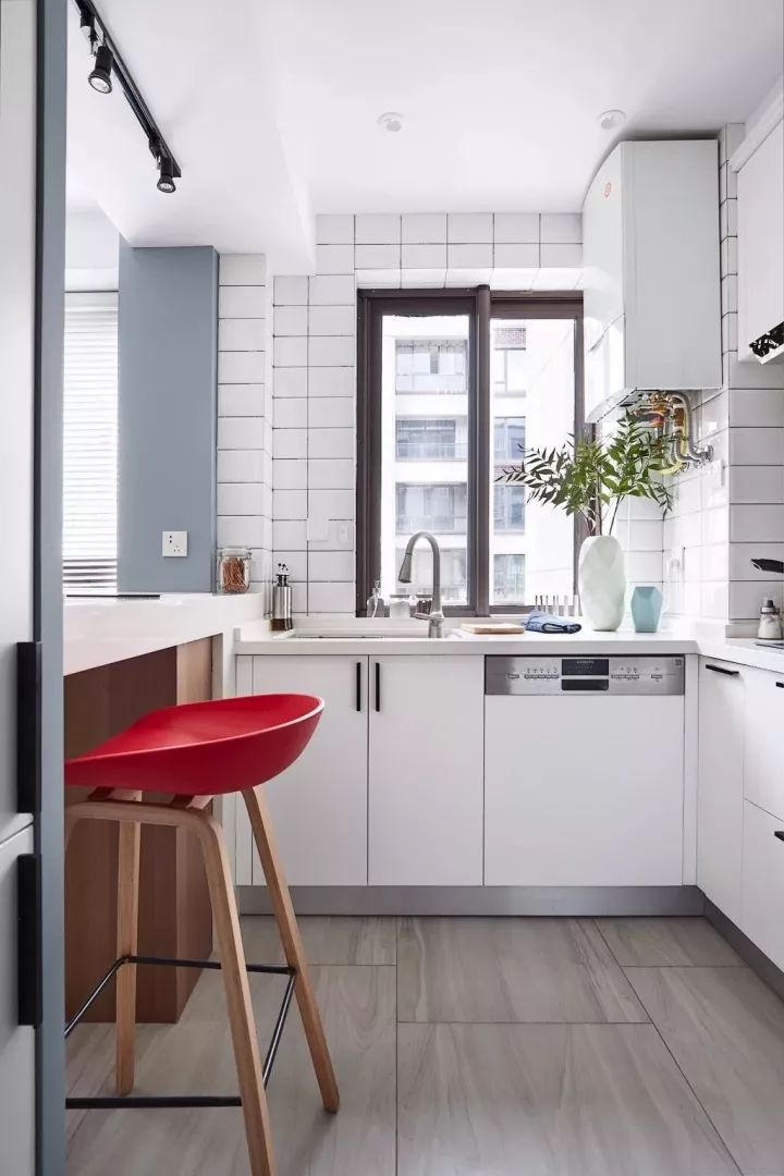 白色的小瓷磚,搭配白色的櫥柜,簡潔的北歐風(fēng)很好的呈現(xiàn)出來了。