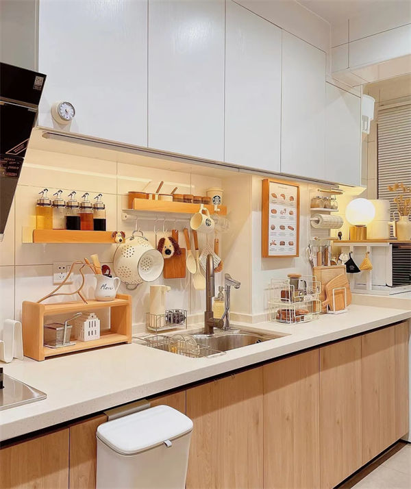 廚房臺面進深60公分,吊柜進深35公分,相差25公分,做飯不怕碰頭。