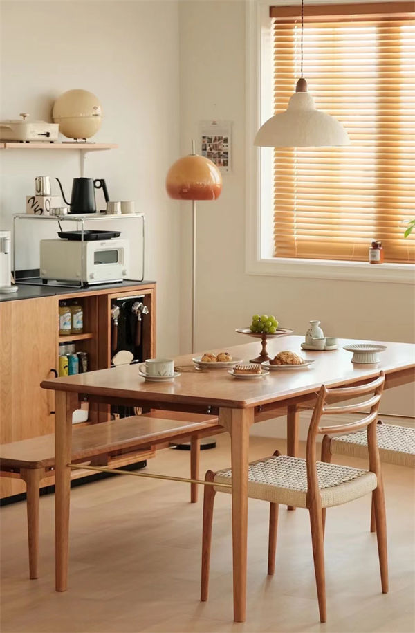 桌椅餐桌的高度75厘米,椅子高45厘米,桌椅高度相差30厘米左右,不容易踩到對面人的腳,使用起來也舒服。