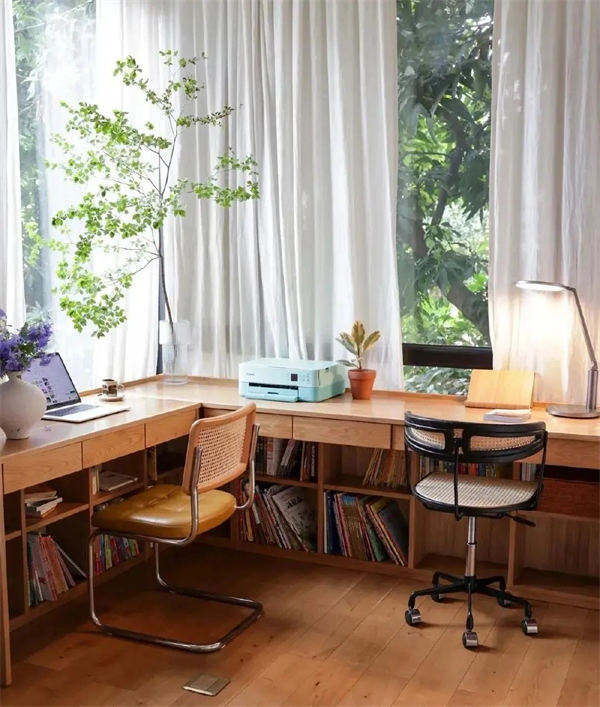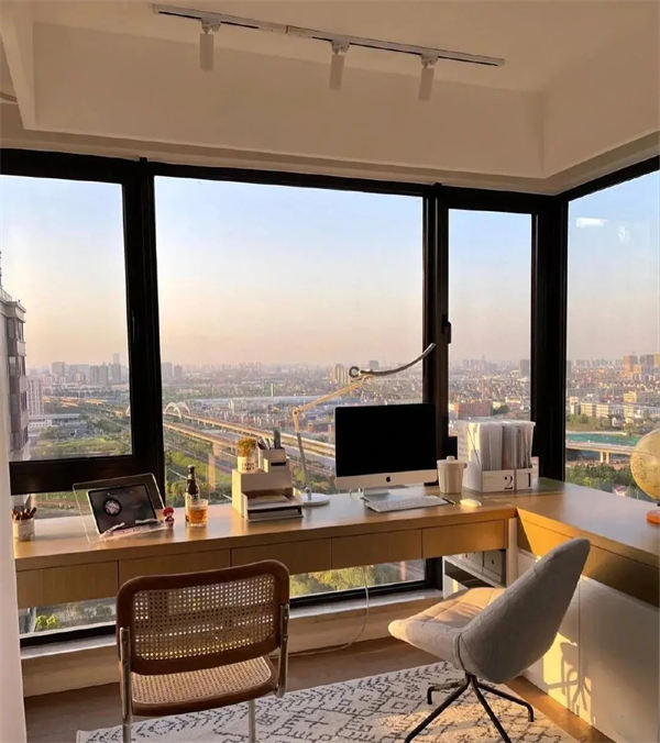 如果沒有一個正式的書房,也可以把書房安裝在陽臺,打造書房陽臺,也是對有限空間的最大利用。