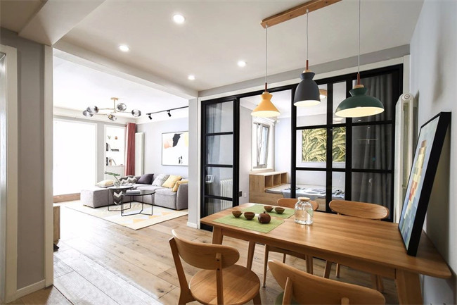 推拉門隔斷應(yīng)該是用的比較多的一種隔斷方法,隔而不斷,拉開關(guān)閉都很隨心,隔斷效果也不錯。