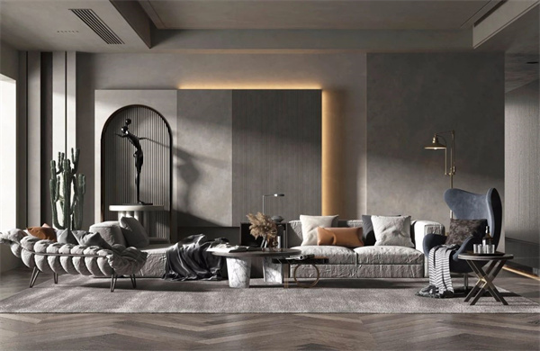 當(dāng)下最流行的風(fēng)格侘寂風(fēng)、現(xiàn)代極簡風(fēng),都追求素雅樸實,摒棄過多的裝飾造型元素,為了在墻面上塑造藝術(shù)感不單調(diào),會使用藝術(shù)涂料進(jìn)行裝飾,比如微水泥、磐多魔、肌理漆、天鵝絨藝術(shù)涂料等等。