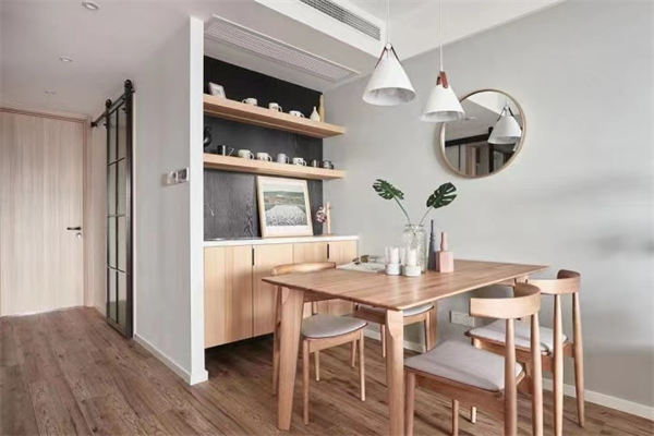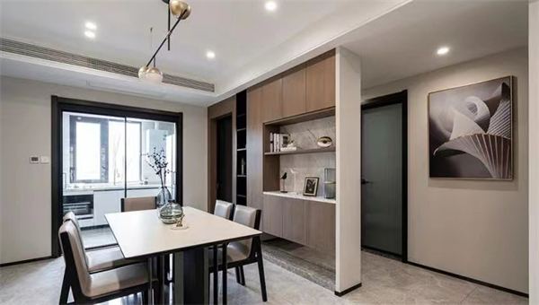 喜歡嵌入式設(shè)計(jì)但餐廳又是承重墻的話,也可通過砌假墻的方式來實(shí)現(xiàn)。