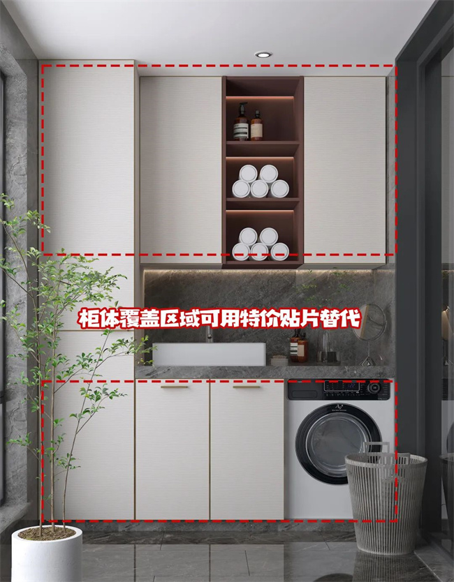 廚房因為有大面積的瓷磚被吊柜、櫥柜覆蓋,陽臺我們也準備擺放柜子增加儲物空間,所以這兩個區(qū)域的墻磚可以選用小品牌的特價磚鋪貼,可以省一筆。