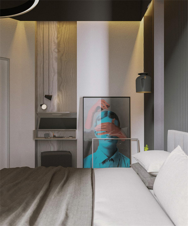 在現(xiàn)代家庭中,不建議單獨買柜子,根據(jù)空間的尺寸定制整體衣柜,可以大大提高臥室的使用率,還可以加入梳妝臺、書桌等功能。
