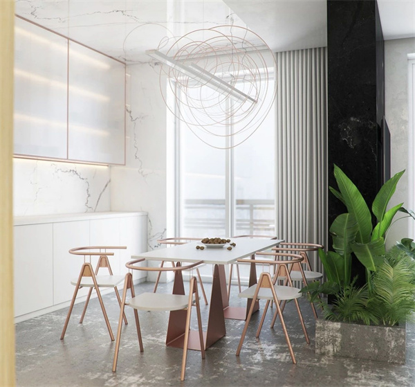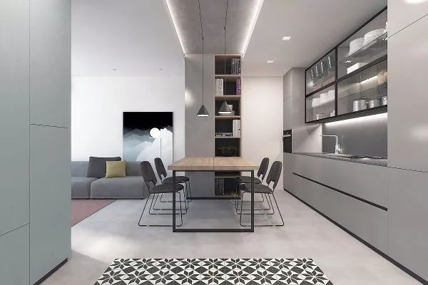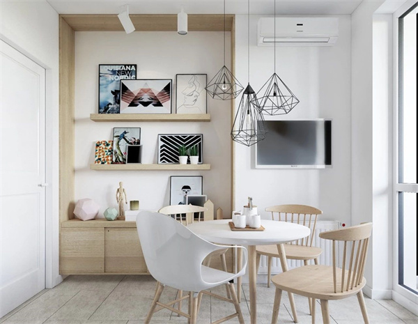 具有收納功能的餐邊柜是餐廳的重要家具,可以作為廚房功能的延伸,不僅能增加就餐氛圍,更是提升空間利用率的利器。如果餐廳位置不足,可以考慮靠墻設計幾個開放性擱板,方便臨時儲存東西。