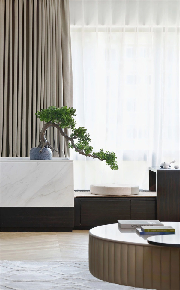 在飄窗的兩側(cè)或下面打造一個飄窗柜,不僅可以收納物品,還可躺可臥,打造出一處不可多得的休閑角落。