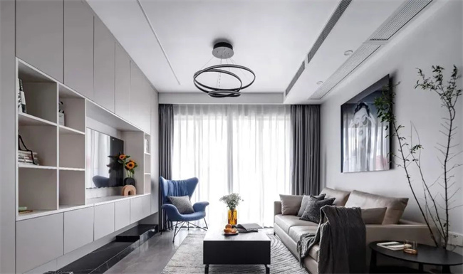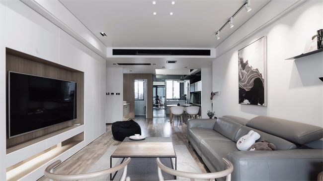 軌道燈搭配前面的筒燈和燈帶,可以做成"見光不見燈"的無主燈設(shè)計,單獨(dú)做軌道燈的話,可以不用做吊頂,還可以隨意拆卸,不僅應(yīng)用在客廳,還能在玄關(guān)、餐廳和廚房,照射到一些照不到的"死角",讓家更明亮。