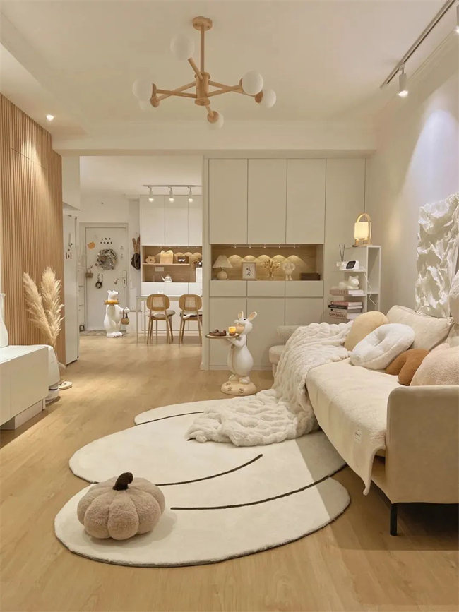 奶油風(fēng)最直觀也是最核心的特征在于,硬裝空間簡(jiǎn)潔清爽,幾乎沒有冗余的設(shè)計(jì),而軟裝卻需要追求質(zhì)感與細(xì)膩,這樣軟硬裝相互協(xié)調(diào),并保持色調(diào)的統(tǒng)一,才能打造出明亮溫柔的居家氛圍。而想要打造出親民、時(shí)髦的奶油風(fēng),無(wú)非要從材質(zhì)、造型、燈光這3點(diǎn)要素著手!