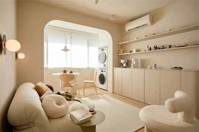 奶油色雖然是淺色,但是偏暖,所以在有效提升空間亮度的同時(shí),也不會(huì)像北歐風(fēng)那樣容易有“清冷感”,就很像我們離不開的“奶茶”,暖而不燥,甜而不膩,所以特別受年輕群體的喜歡。