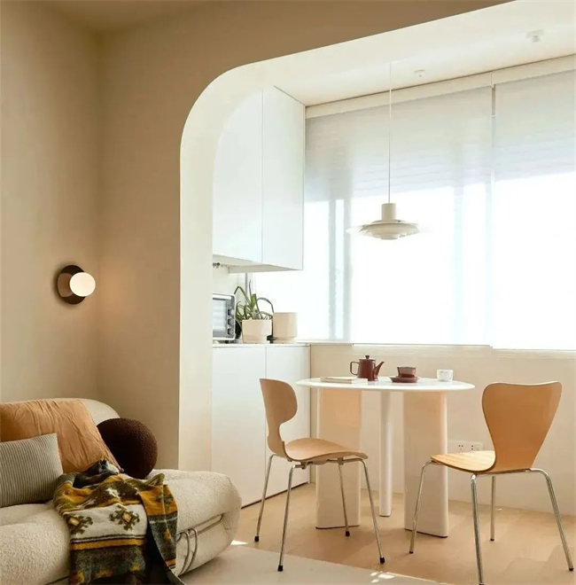在奶油風(fēng)的設(shè)計(jì)中,對(duì)于造型的把握主要在家具造型的選擇,以及空間硬裝造型的設(shè)計(jì)上。為了搭配出奶油系溫暖喜人的風(fēng)格,造型方面千萬(wàn)不可以死板、沉重,多些圓潤(rùn)的彎角,少點(diǎn)呆板的直線設(shè)計(jì)。