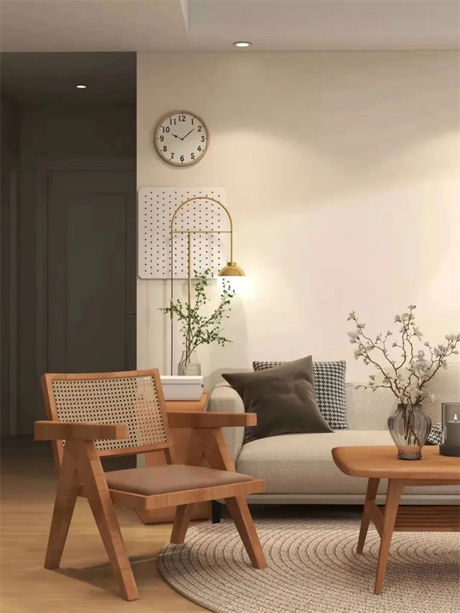 比如沙發(fā)、座椅,就可以選擇自然原木質(zhì)感類,比如藤編、原木制等,那沙發(fā)就可以選擇帶有羊絨或海綿類,比較Q彈座墊的座椅,可以很好地突出整體氛圍的溫軟柔和。