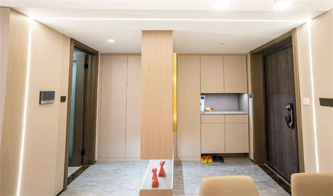 多隔層、大進(jìn)深、傾斜隔板設(shè)計(jì)的鞋柜收納空間更大,另外玻璃磚的透光性更好。