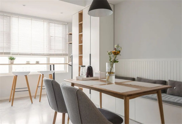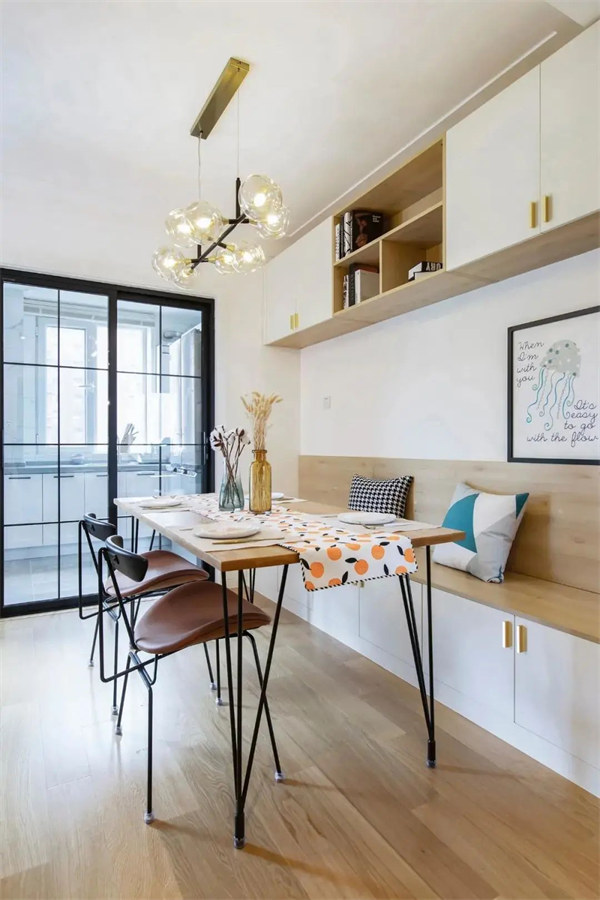 卡座+柜子,可以充分利用起家里的每一處空間,卡座和柜子組合,延展局部空間的有限功能。