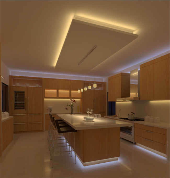 廚房空間需要充足的光線,常以射燈和吸頂燈為主。