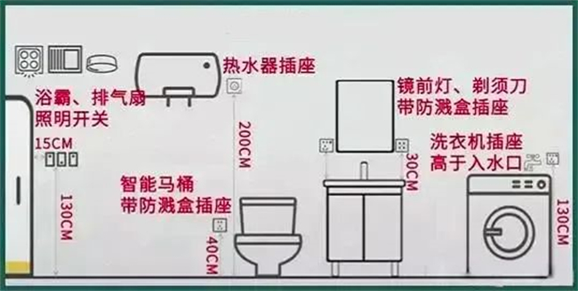 洗漱臺建議多留幾個插座,方便剃須刀充電、吹風機使用等。在馬桶旁邊,也要多預留好插座的位置,既可以方便之后智能馬桶的安裝,也可以在蹲廁同時給手機充電。同時提醒衛(wèi)生間多水汽,插座最好選用有防護罩的,避免進水。