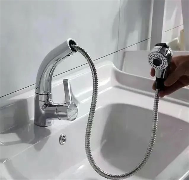 建議洗漱臺使用抽拉式水龍頭,其更加的靈活方便,日后洗頭、洗臉使用起來也更加的便利。