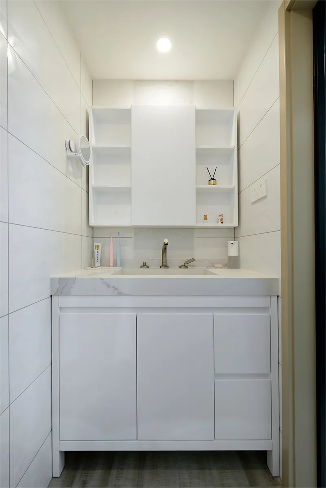 衛(wèi)生間面積較小,則收納就顯得尤為重要,一定要充分利用墻面空間增加收納,如馬桶上方加擱板置物架或吊柜,或者淋浴區(qū)安裝壁龕等。