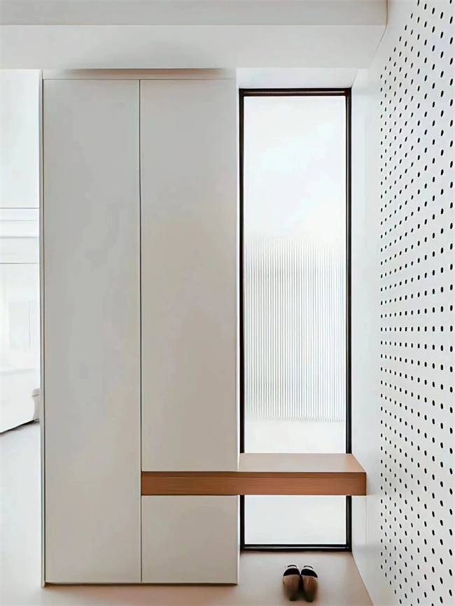 對(duì)于入戶就是客廳的戶型來(lái)說(shuō),門(mén)一打開(kāi)房間里一覽無(wú)遺,毫無(wú)隱蔽性可言;門(mén)后隨手換下的衣物會(huì)因?yàn)闊o(wú)處擺放而影響美觀,破壞視覺(jué)觀感。