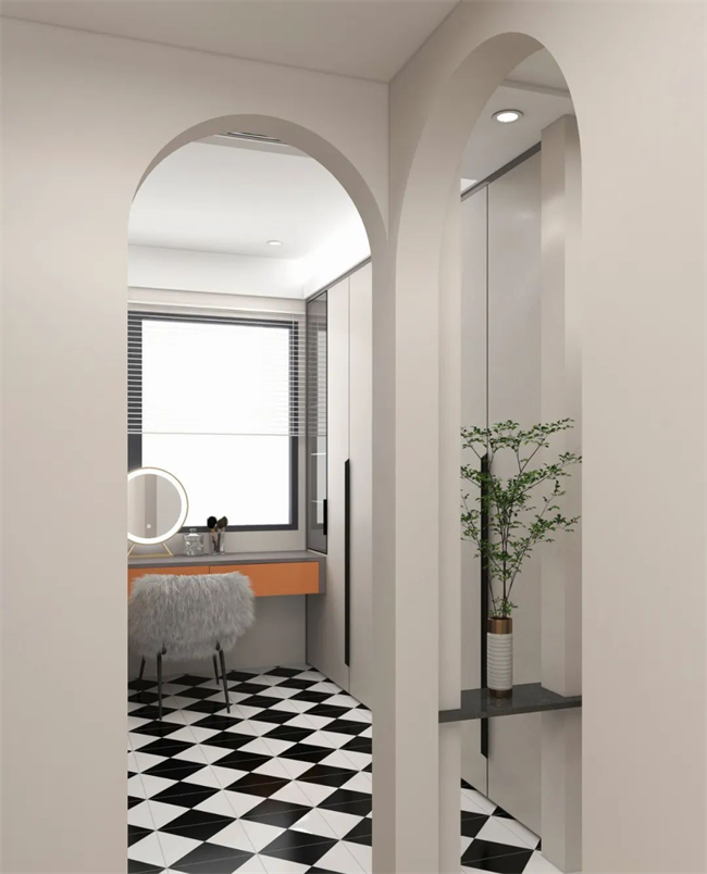 不再局限于方方正正的造型,而是通過弧形、圓形等更多不同的線條去豐富空間,加強設計感及空間趣味性。