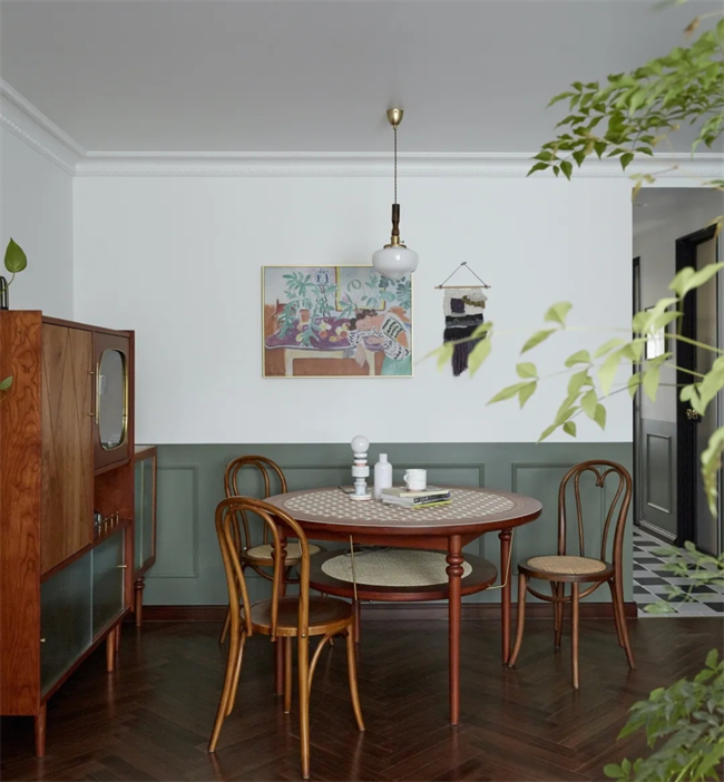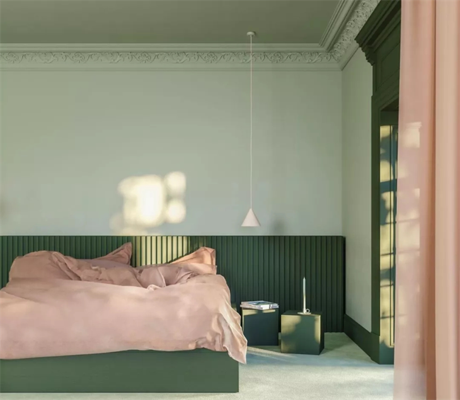 墻面上下兩部分刷成不同的顏色,居中分割、上大下小、上小下大都可以。上半部分多用白色或者淺色系,下半部分則多用深色,避免造成頭重腳輕的感覺,給空間帶來獨特的層次感。