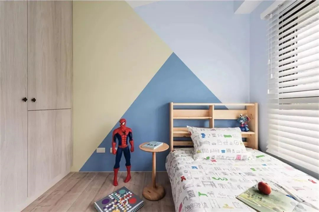 各類幾何圖案的拼接能豐富視覺效果,讓墻面更生動、更具表現(xiàn)力。還可以選取自己偏愛的幾何圖形進行組合涂刷,形成色彩區(qū)塊,為空間增添更多趣味性。