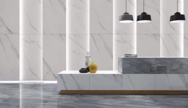 3、巖板vs普通瓷磚;普通瓷磚的成分是陶土、黏土等材料胚體呈黃色,湊近一點(diǎn)看可以看見雜質(zhì)。側(cè)面能看到釉層和胚體明顯的分層,是模具成型的工藝,背面上都有不同的模具紋理,燒制溫度在700°C左右。巖板的成分是二氧化硅、無機(jī)黏土天然石料,巖板的尺寸在1.2mx2.4m以上,胚體是白色的,很干凈,沒有雜質(zhì)的,側(cè)面通體不分層,巖板是滾壓成型的工藝,背面是平的,大多都是偏白色。,燒制溫度在1200°C以上。