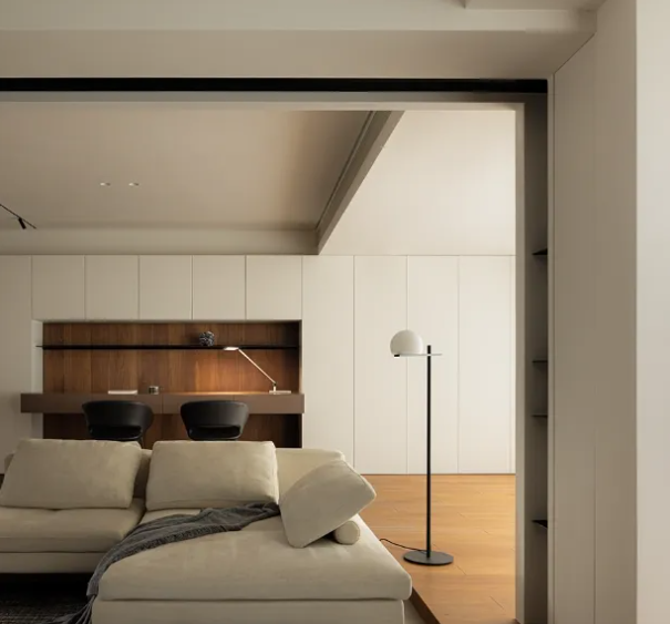 以沉靜木飾鋪陳空間主要元素,以溫潤(rùn)的筆觸蘊(yùn)家,用純粹通透的格局去豐盈日常的多面可能性,以自然之色填補(bǔ)自然而然的生活。臨窗圍合一方專(zhuān)屬區(qū)域,慢煮時(shí)歲,細(xì)烹雪月,或追字逐句,或浸潤(rùn)百茶,松弛且愜意。