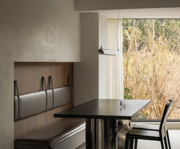 頗具場(chǎng)景感的餐區(qū)豐盈宅家日常,定制卡座增添就餐意趣,暖調(diào)燈光渲染融融氛圍,再看臨窗枝椏蔥榮,引入光影成畫(huà),塑起煙火氣與文藝感交融的氣質(zhì)場(chǎng)域。