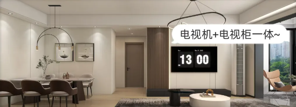 ??電視機+電視柜一體化設計,十分符合房屋整體沉著、穩(wěn)重的氣質~