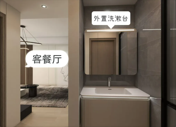 洗漱臺與廁所分離,美觀的同時也兼顧到家中客人的各種情況