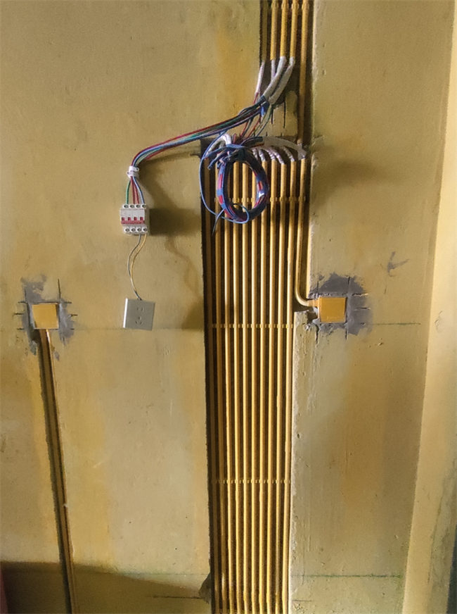 所有電線均在彈線開槽后,先鋪設(shè)線管再進(jìn)行穿線。避免先穿線后鋪設(shè)線管后,無法抽動(dòng)電線的現(xiàn)象,便于后期發(fā)生問題可以抽動(dòng)電線維修。